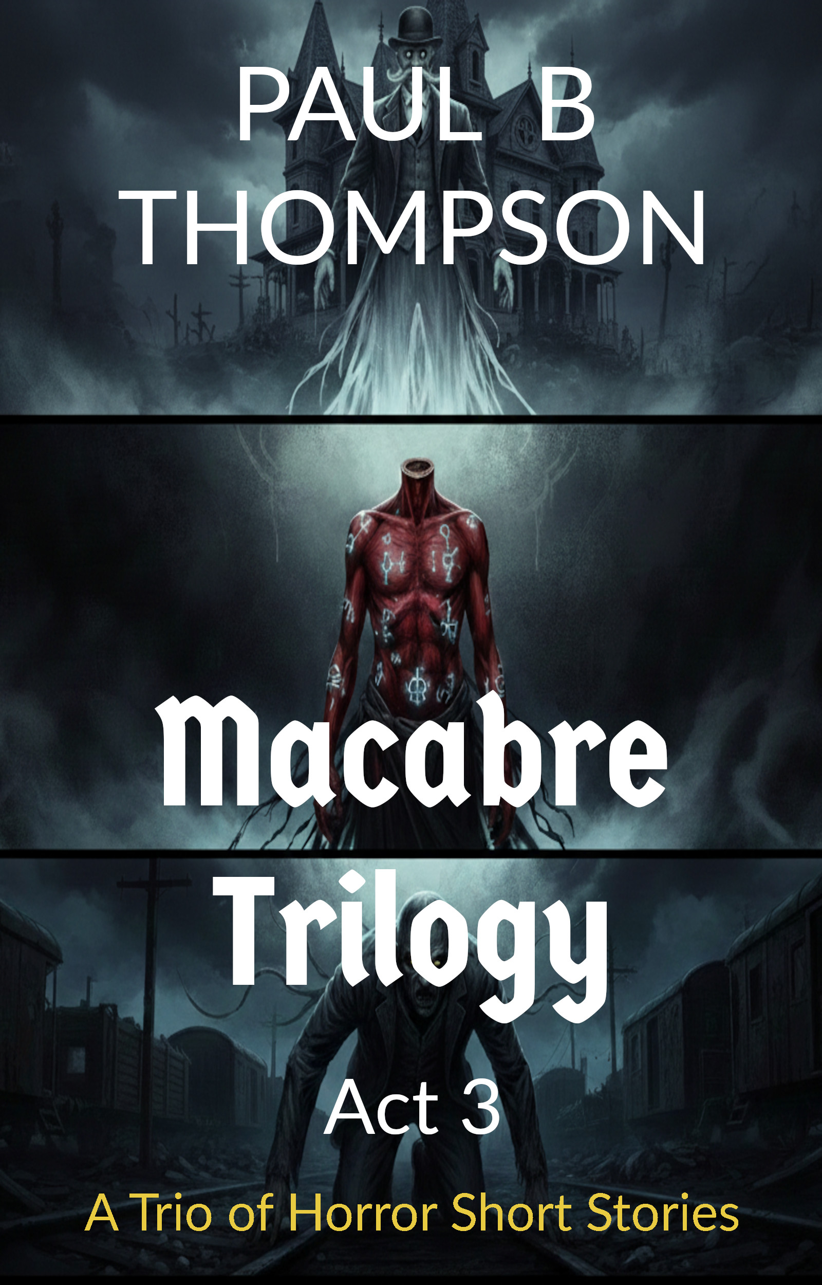 The apparition floated in the air and glowed a pale white light. It was half the figure of a man. The bottom half was just wispy tendrils of white light. The top half was a man dressed in an old fashioned suit with a bowler hat. A long twisty moustache protruded from his top lip.